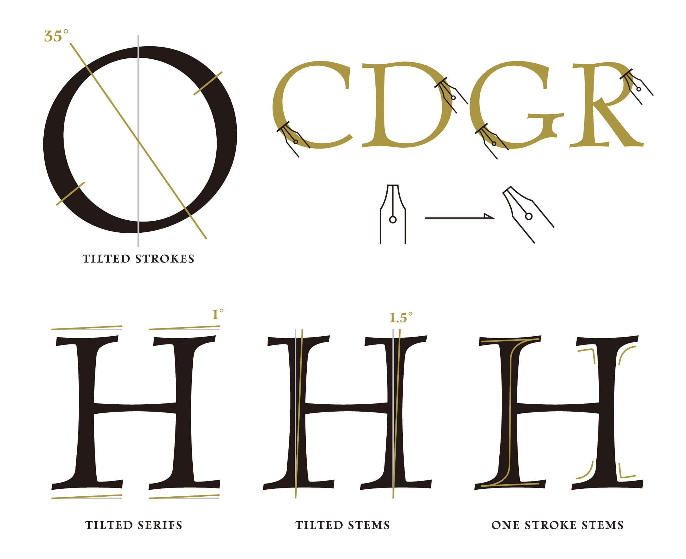 今市定規で引いた線のように幾何学的なものって、「きちんと計算されて設計されている」という信頼感が出るのではないかと考えたんです。言うならば、フリーハンドで引いた線と、定規で引いた線の印象の違いのような。そのニュアンスを感じるタイプにしたいなと思い、既存書体をベースにしながらも、Cを正円に近い形にしたり、Aの形もあえて幾何学的に作っています。