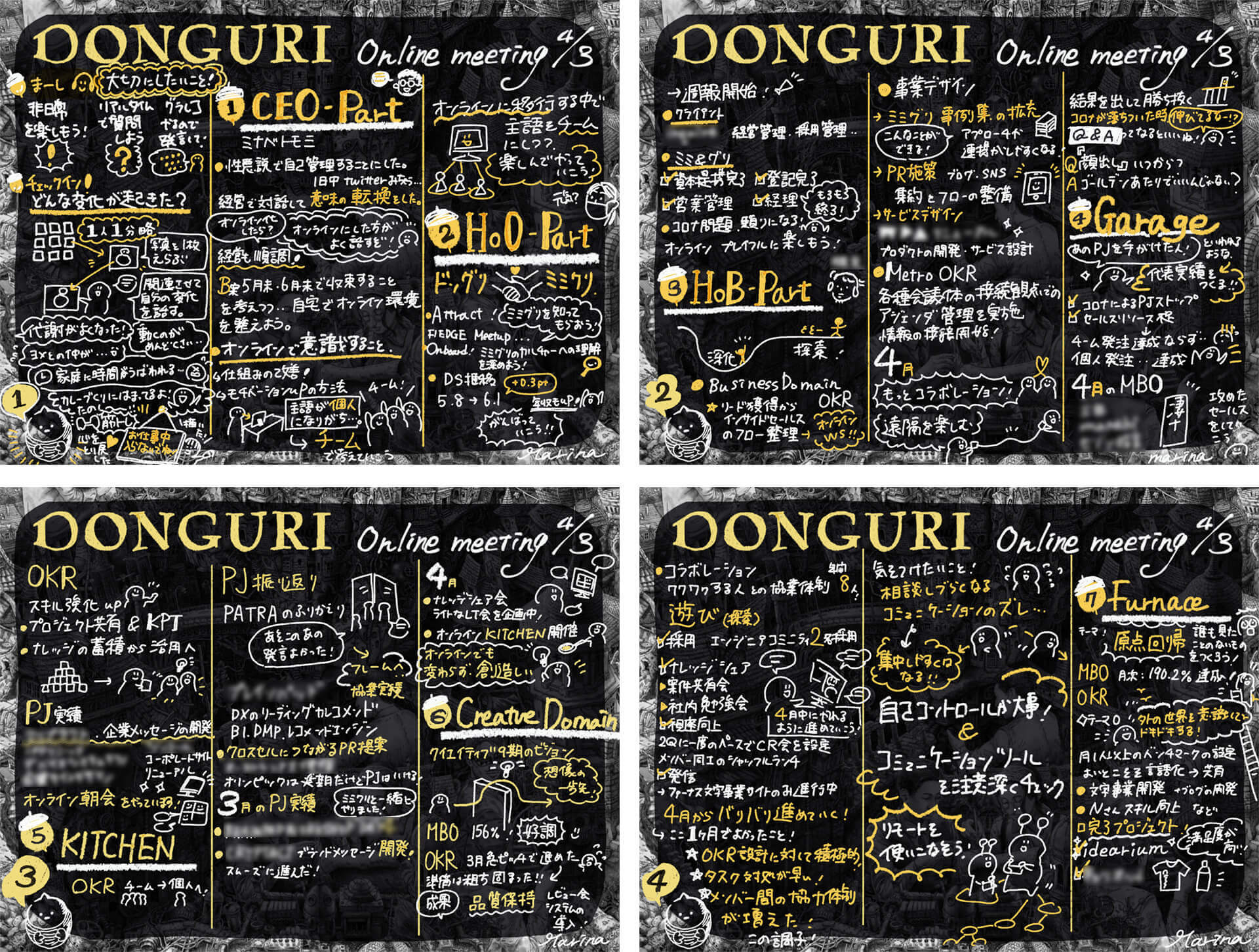 2020年3月のミミクリデザインとの協業後も、その構成やコミュニティのあり方はほとんど変わっていなくて。ただ、2020年2月でちょうどDONGURIの8期が終わって、3月からはミミクリデザインとの協業が始まるっていうタイミングだったので、それぞれのコミュニティが振り返りとか、これから向かう方向について対話を重ねていたんですね。その流れで、名称を変えるっていう話になっていったんです。