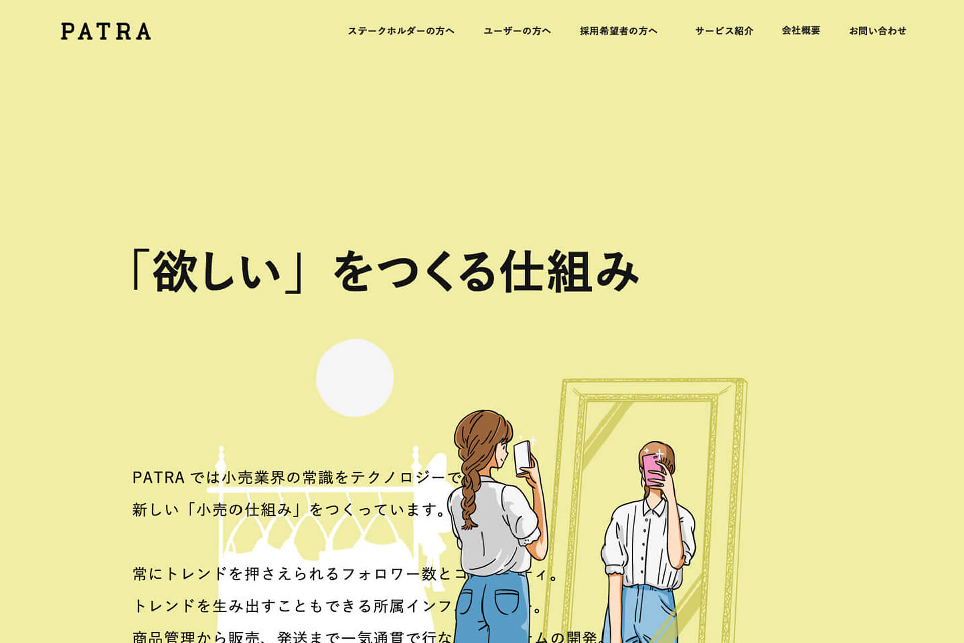 テクノロジーで「新しい購買体験の仕組み」を生み出し、SNS時代にマッチするコミュニケーションと企画力で、ガールズトレンドの最先端をリードする株式会社PATRA。